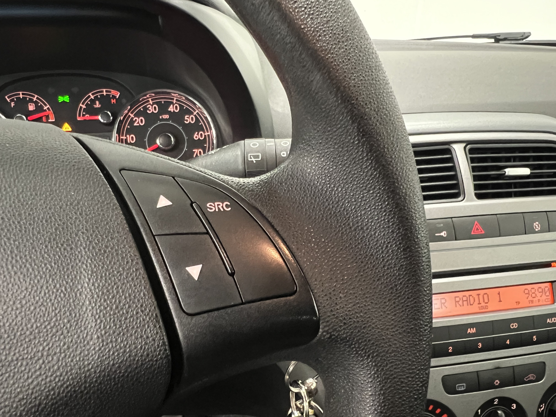 Met één druk op de knop blaast de airconditioning een koele bries door het interieur. De uitrusting van deze auto is met audiobediening op het stuurwiel, centrale deurvergrendeling met afstandsbediening en boordcomputer behoorlijk compleet.