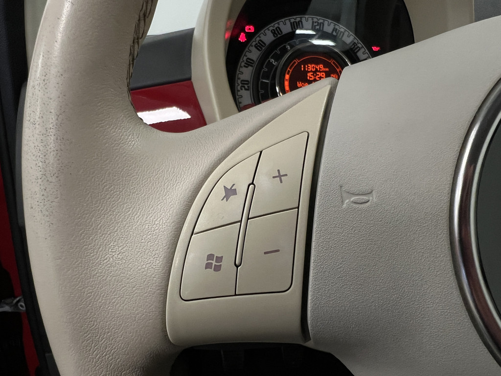 Zijn dynamische uiterlijk maakt al direct duidelijk wat voor rijervaring u van deze Fiat 500 mag verwachten: pure sportiviteit. Met zijn pittige benzinemotor stuurt u deze auto gemakkelijk en vlot door het verkeer. Files: ze kosten ergernis en tijd. Maar vanaf nu geen onnodige brandstof meer. Als u stilstaat, schakelt het start-stop systeem de motor uit. En aan, zodra u weer kunt. Tot de uitrusting van deze Fiat behoren ook 15 inch lichtmetalen velgen en in delen neerklapbare achterbank.
