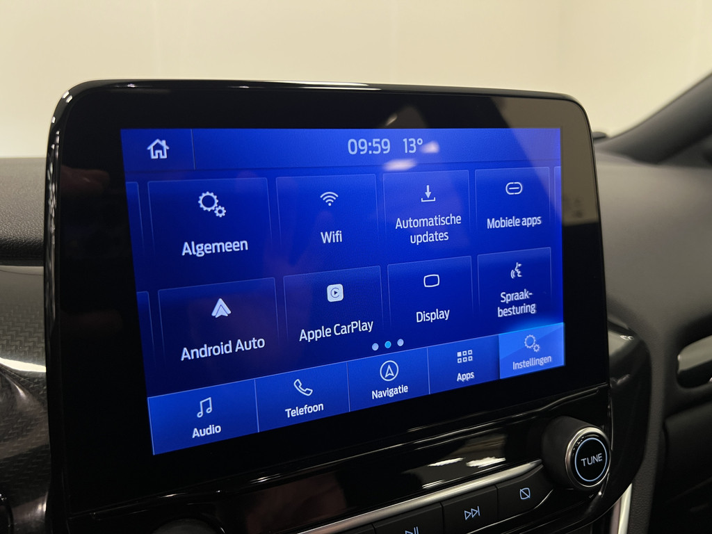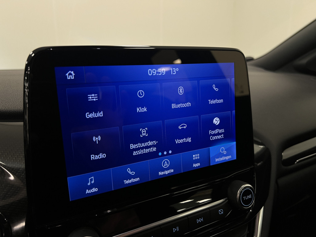 Het digitale dashboard is qua lay-out en zichtbaarheid superslim ingedeeld. Alle functies in één keer in beeld! Pech of storing, altijd vervelend. Maar met Connected Services weet u direct wat eraan scheelt. En dus ook wat er moet gebeuren. U bedient het full map navigatiesysteem en het audiosysteem met DAB-radio via knoppen op het stuur, of zelfs met uw stem. Zo kunt u steeds uw aandacht gericht houden op de weg. Extra makkelijk is de draadloze telefoonlader. Bij het wisselen van rijbaan kan een dode hoek ontstaan waardoor achterliggers te dichtbij kunnen komen. De achteropkomend verkeer waarschuwing geeft in dat geval automatisch een signaal. Met automatische airconditioning, parkeersensoren achter, regensensor, cruise control, sportstuurwiel en automatisch dimmende binnenspiegel is deze Ford helemaal compleet.
