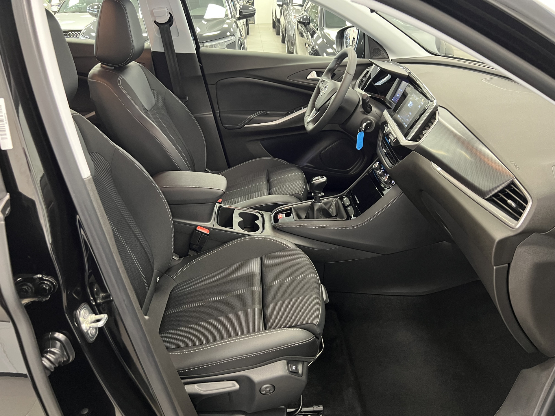 Dankzij het digitale dashboard in deze auto kan u de interface van uw cockpit personaliseren. Electronic climate control regelt volautomatisch de temperatuur. U kiest de gewenste temperatuur en het systeem doet de rest. Volume aanpassen, andere radiozender? U bedient het audiosysteem veilig en handig met de functies op het stuur. Voor een storingvrije radio-ontvangst zorgt de ingebouwde DAB-ontvanger. Boem is ho? Niet bij deze Opel Grandland. De piepjes van de parkeersensoren waarschuwen u op tijd voor obstakels. De Opel is standaard voorzien van: lederen sportstuur, regensensor, cruise control, centrale deurvergrendeling met afstandsbediening en boordcomputer.