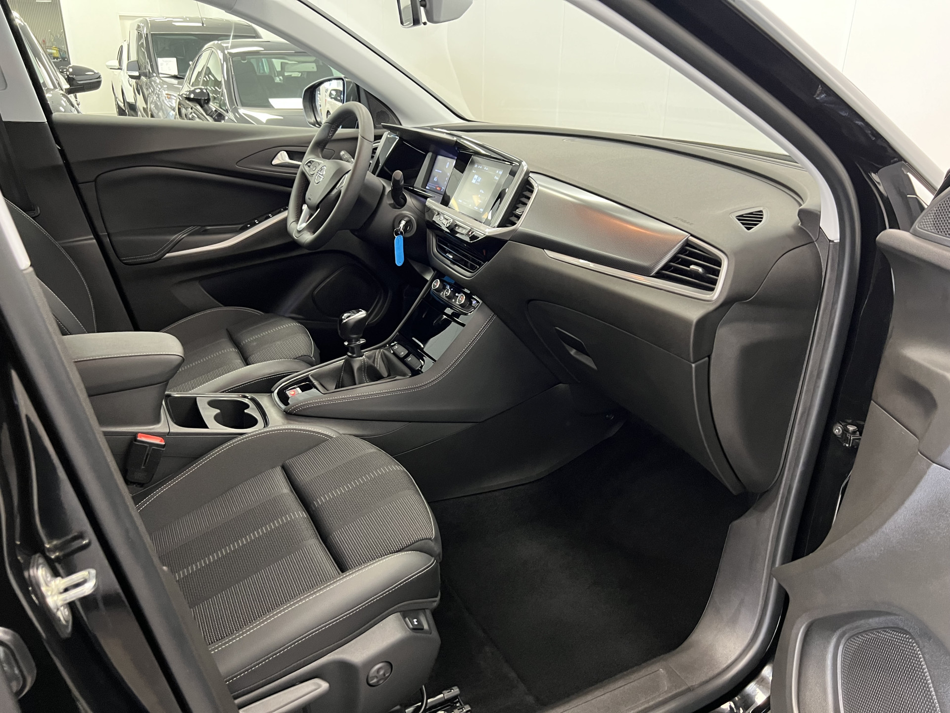 Dankzij het digitale dashboard in deze auto kan u de interface van uw cockpit personaliseren. Electronic climate control regelt volautomatisch de temperatuur. U kiest de gewenste temperatuur en het systeem doet de rest. Volume aanpassen, andere radiozender? U bedient het audiosysteem veilig en handig met de functies op het stuur. Voor een storingvrije radio-ontvangst zorgt de ingebouwde DAB-ontvanger. Boem is ho? Niet bij deze Opel Grandland. De piepjes van de parkeersensoren waarschuwen u op tijd voor obstakels. De Opel is standaard voorzien van: lederen sportstuur, regensensor, cruise control, centrale deurvergrendeling met afstandsbediening en boordcomputer.