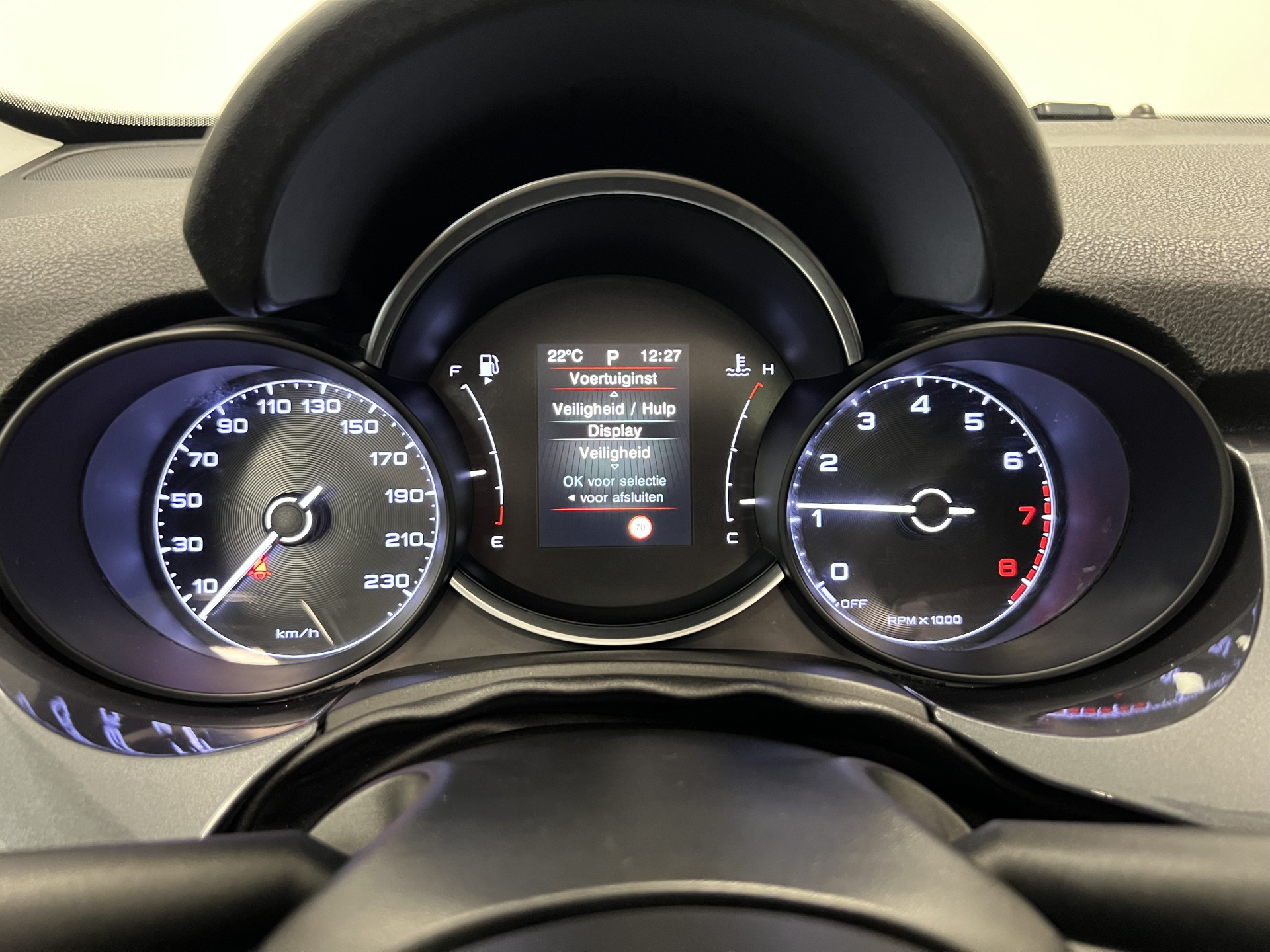 In de Fiat 500 X Cross heeft uw veiligheid en die van uw omgeving prioriteit. Bij de veiligheidssystemen van deze Fiat hoort ook de verkeersbord-detectie. Die leest tijdens het rijden als het ware met u mee en attendeert u op de significante verkeersborden langs en boven de weg. Onbedoeld buiten de rijstrook raken wordt voorkomen door het Lane-keeping systeem.
