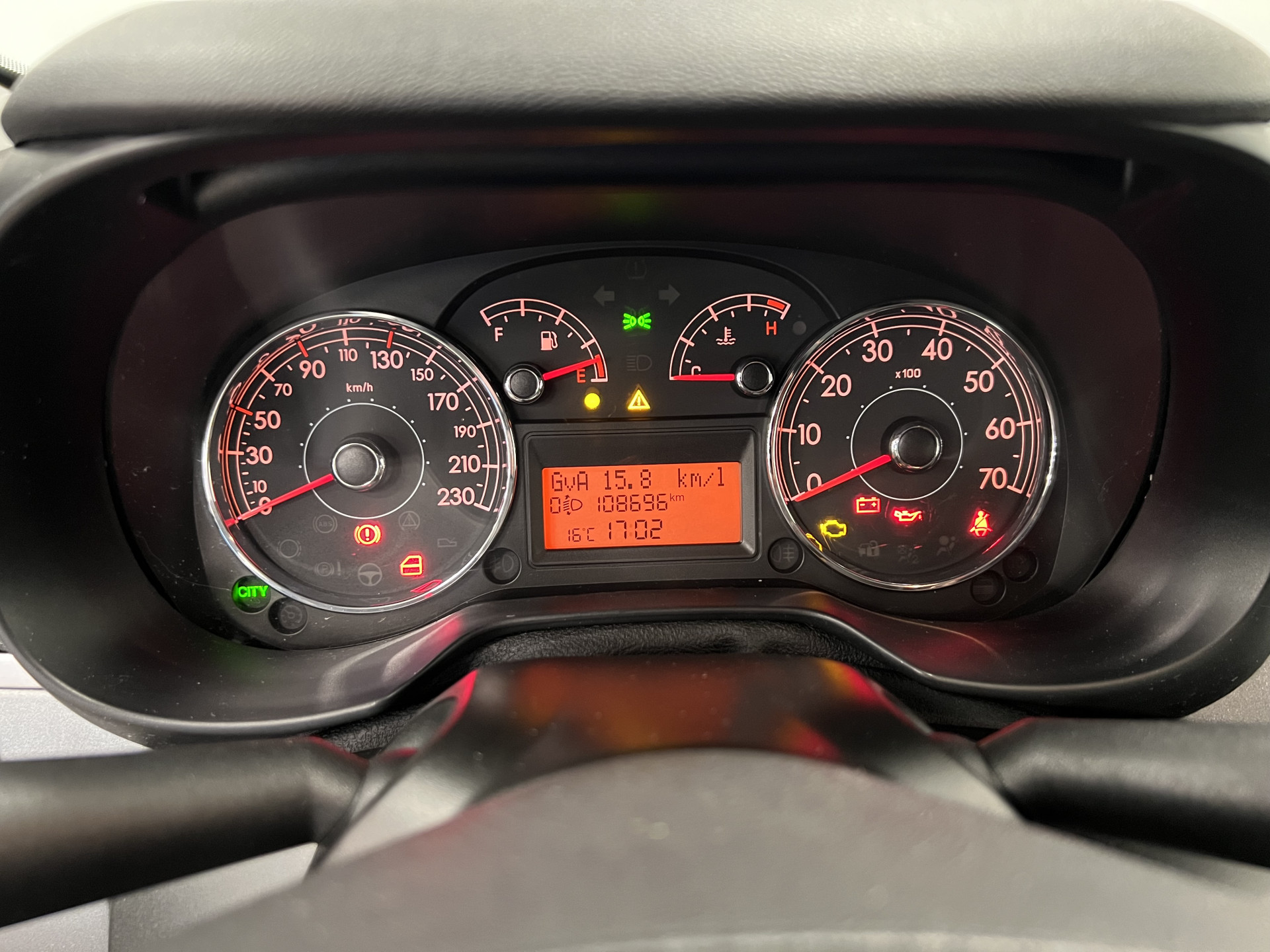 Met één druk op de knop blaast de airconditioning een koele bries door het interieur. De uitrusting van deze auto is met audiobediening op het stuurwiel, centrale deurvergrendeling met afstandsbediening en boordcomputer behoorlijk compleet.