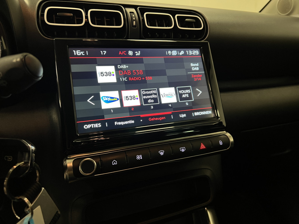 Deze Citroën C3 Aircross is voorzien van remote services. Via uw smartphone bedient u diverse functies ook op afstand en krijgt u informatie over de status van uw auto. Het infotainmentaanbod is zeer uitgebreid. Ontspannen reizen doet u met behulp van het full map navigatiesysteem terwijl u muziek afspeelt via het audiosysteem met DAB-radio. De kans op een kop-staart botsing wordt sterk gereduceerd door het systeem van achteropkomend verkeer waarschuwing. Natuurlijk is er ook automatische airconditioning aanwezig. Boem is ho? Niet bij deze Citroën C3 Aircross. De piepjes van de parkeersensoren waarschuwen u op tijd voor obstakels. Ook is de Citroën uitgerust met: dashboard met spraakbediening, regensensor, cruise control, lederen stuur, centrale deurvergrendeling met afstandsbediening en boordcomputer.