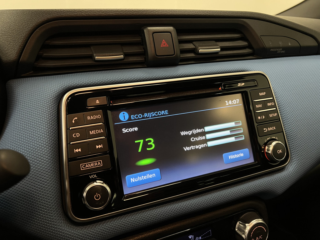 Zoals u mag verwachten van deze Nissan Micra is hij uitgerust met een reeks aan actieve veiligheidssystemen. Brake assist verhoogt de remdruk in een noodsituatie zodat u sneller stil staat. Bovenop deze veiligheidsfeatures heeft deze Nissan bovendien dodehoekdetectie, hill hold functie en bandenspanningcontrolesysteem.