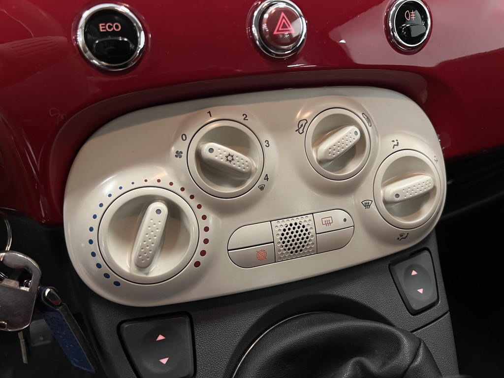 Zijn dynamische uiterlijk maakt al direct duidelijk wat voor rijervaring u van deze Fiat 500 mag verwachten: pure sportiviteit. Met zijn pittige benzinemotor stuurt u deze auto gemakkelijk en vlot door het verkeer. Files: ze kosten ergernis en tijd. Maar vanaf nu geen onnodige brandstof meer. Als u stilstaat, schakelt het start-stop systeem de motor uit. En aan, zodra u weer kunt. Tot de uitrusting van deze Fiat behoren ook 15 inch lichtmetalen velgen en in delen neerklapbare achterbank.